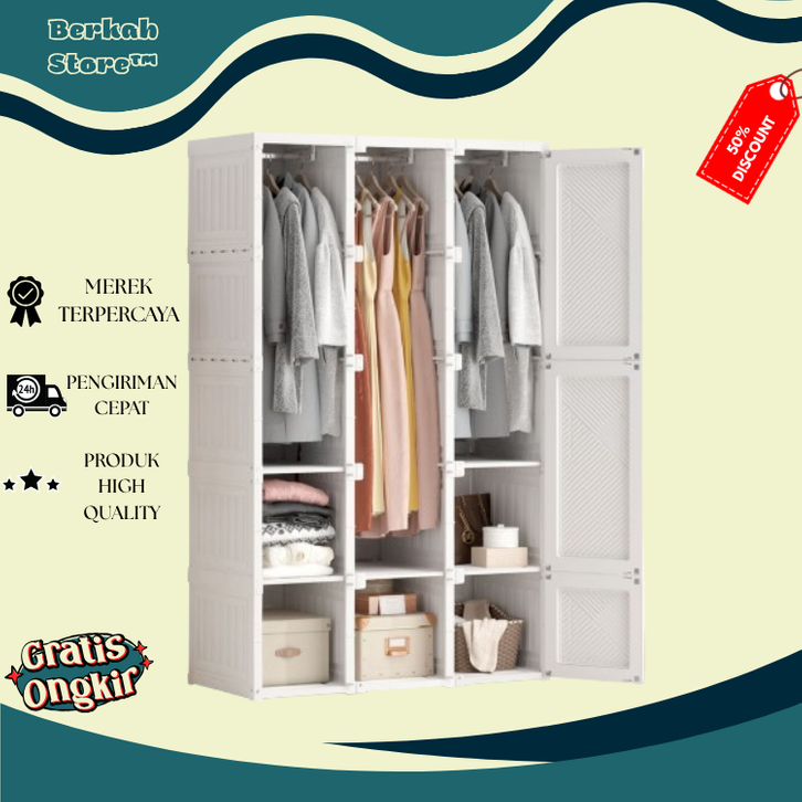 Lemari Pakaian Putih Minimalis 6-15 Box Wardrobe Putih Lemari Baju Plastik Lipat Serbaguna termurah