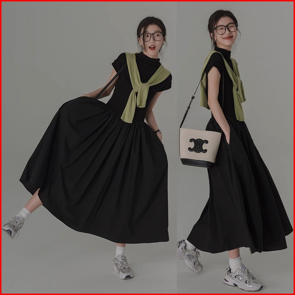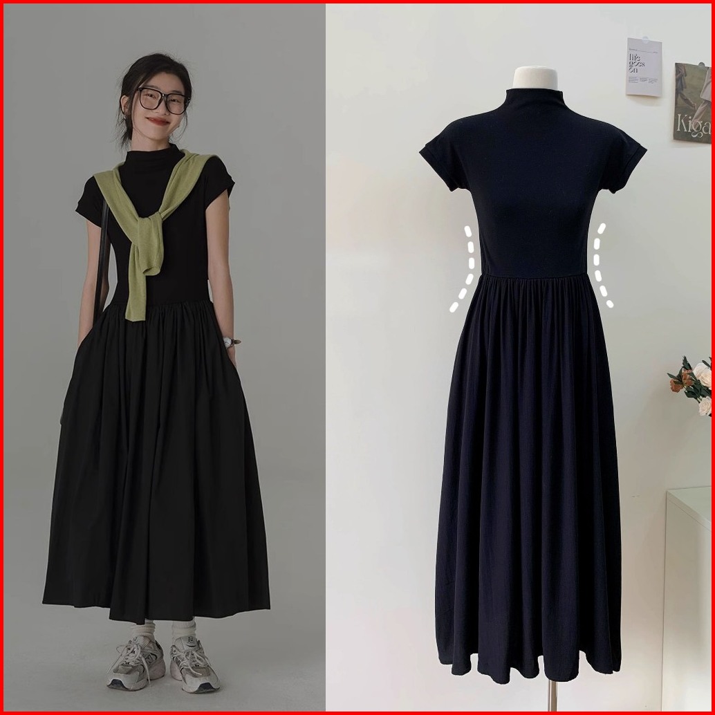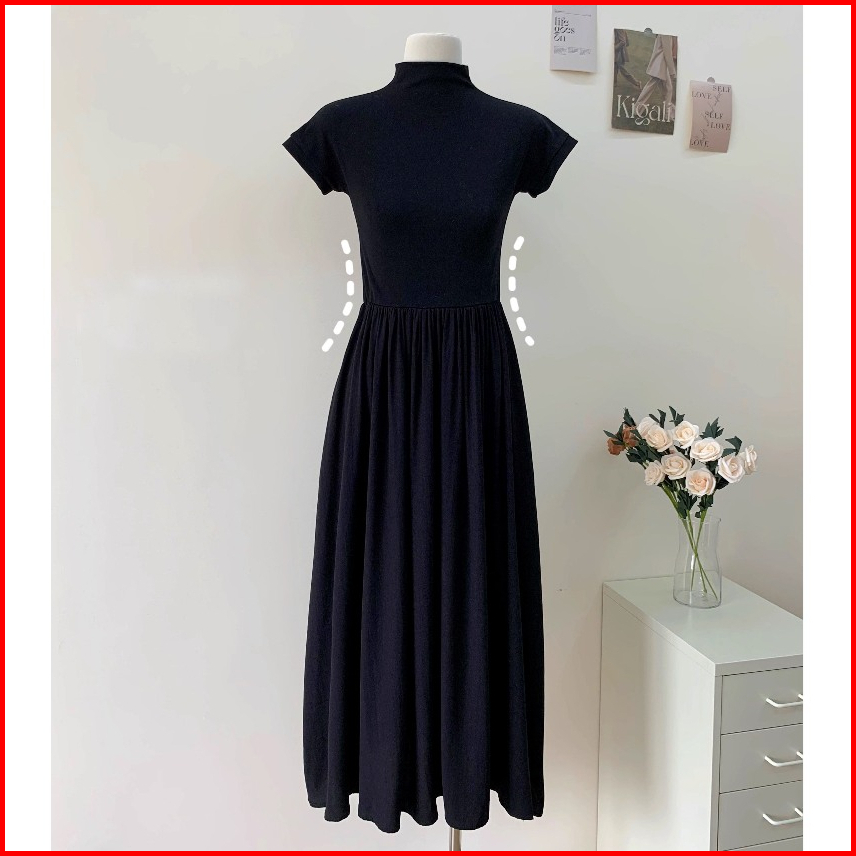 Keygirl Dress Smocked Wanita Korean Vintage Long Dress Turtle Neck Midi Dress Jumbo Dress Pantai Korean Style Kekinian 2