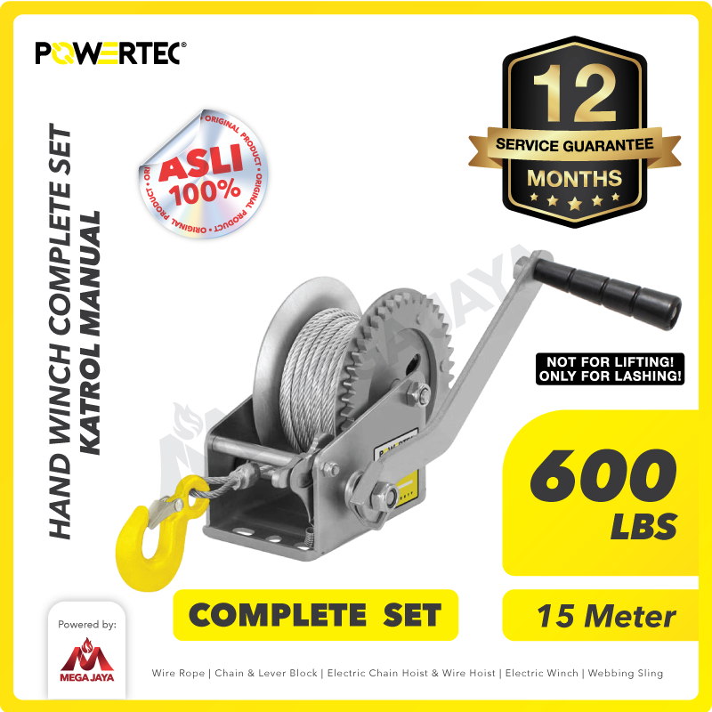 POWERTEC HAND WINCH / KATROL MANUAL 600LBS / 250KG X 15 M GALV