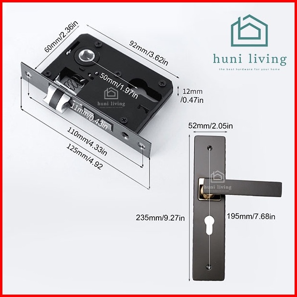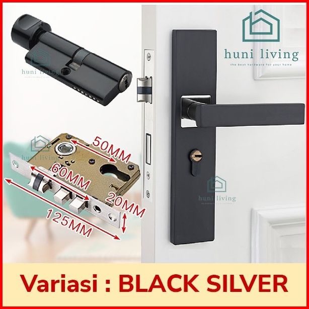 Kunci Handle Set Gagang Pintu Utama Minimalist Hitam Black Silver Doff Premium Berkualitas