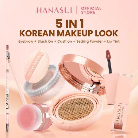 HANASUI 5IN1 KOREAN MAKE UP LOOK (CUSHION SOULMATTE, BLUSH ON, LIP TINT, EYEBROW, SETTING POWDER)