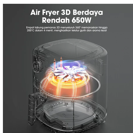 Air Fryer 4 Liter 650 Low Watt Mesin Penggorengan Tanpa Minyak Touch Screen Magic Fryer Pot 7 Mode Masak