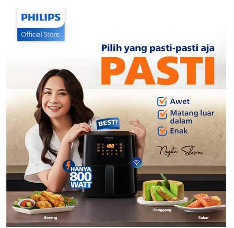 Airfryer Terbaik Low watt - 800 watt - HD9255/90 Digital - Multifungsi - air fryer paling bagus - 4.1 L