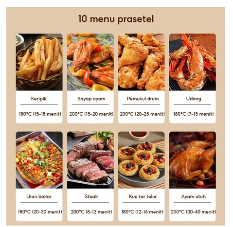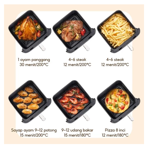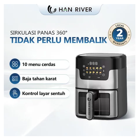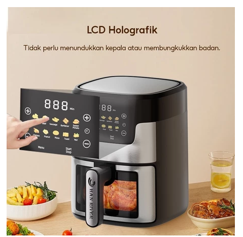 Air Fryer Touch screen Digital 8L kapasitas besar 650W Low Watt Penggoreng Makanan Serbaguna