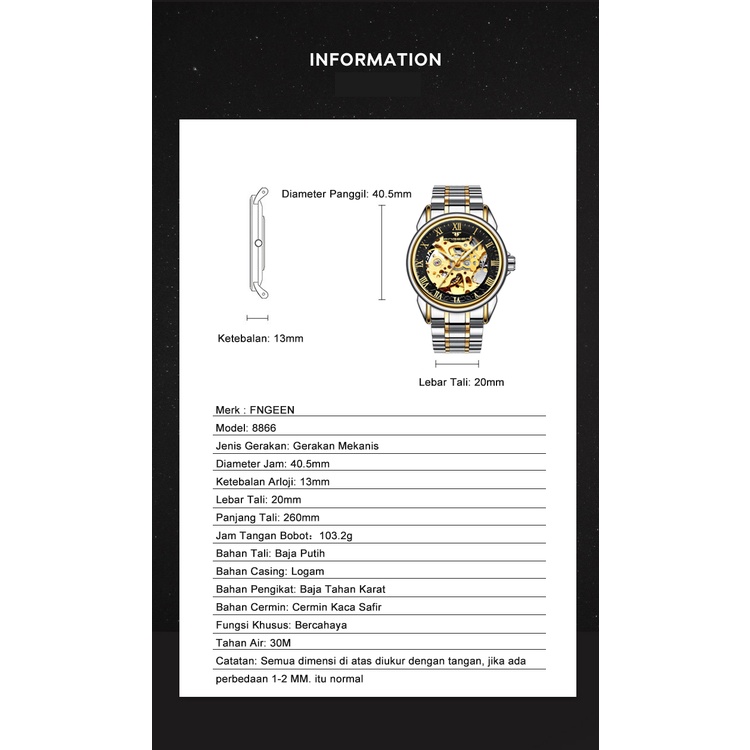 Jam Tangan Pria Luxury Fngeen 8866 Mekanik Otomatis Stainless Steel Original Anti Air Automatic Watch Terbest Seller