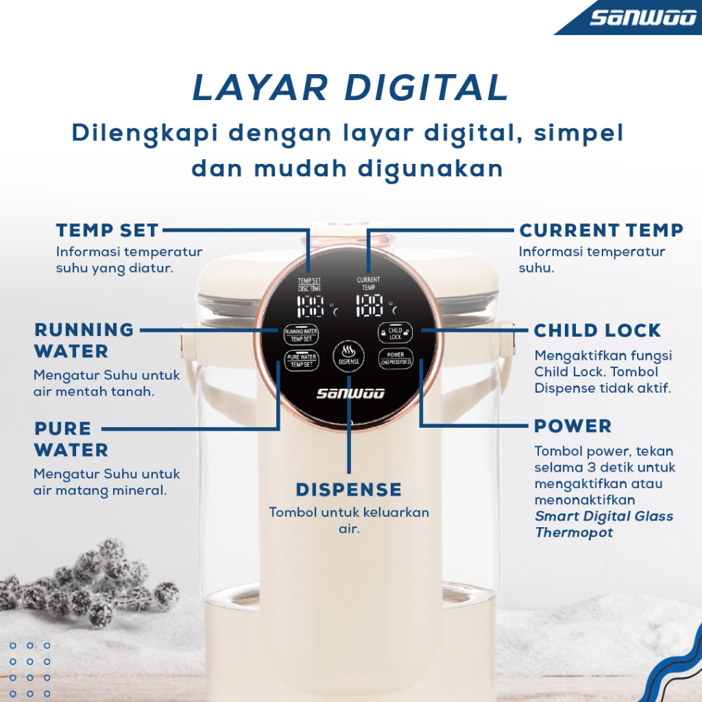 SANWOO SMART ELECTRIC GLASS THERMOPOT EGT-250 TERLARIS