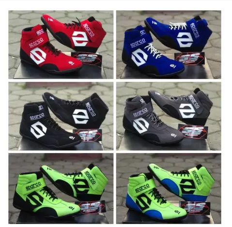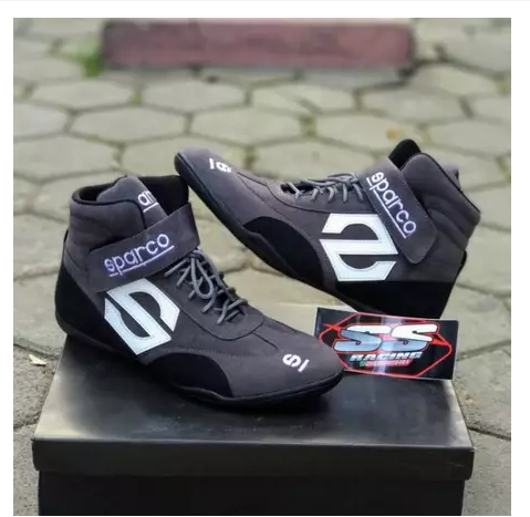 Sepatu balap drag bike race touring cornering gokart drift hitam abu grey bahan suede