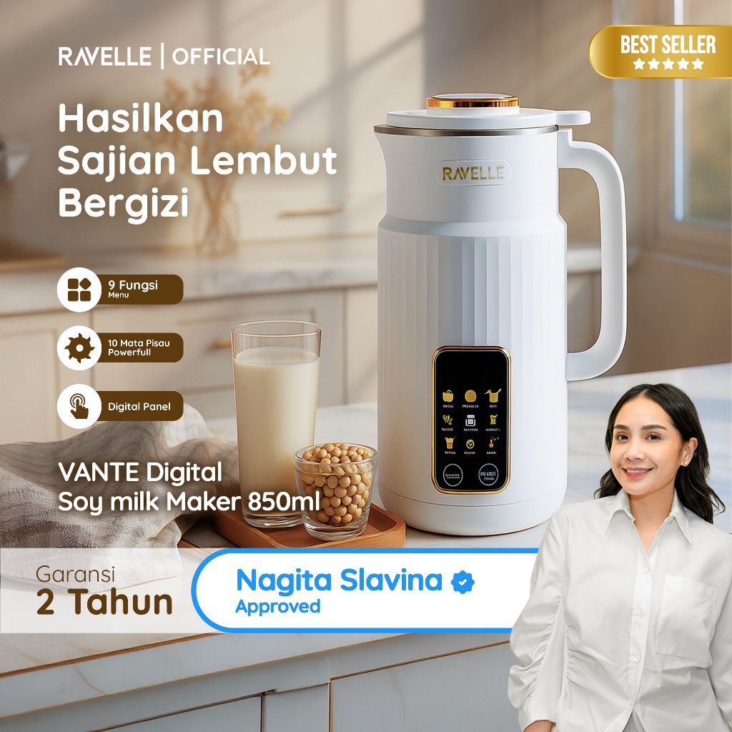 RAVELLE VANTE Digital Soy milk Maker 850ml Suara Halus Korean Style 9 in 1 - Mesin Multifungsi Pembuat Susu Kacang Kedel