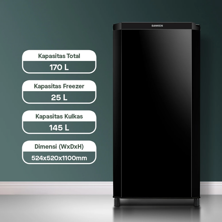 KULKAS 1 PINTU SANKEN 170 160 LITER SK-V173PA-BB HITAM ORIGINAL FREEZER LEMARI ES SATU PINTU ORIGINAL TANPA DP