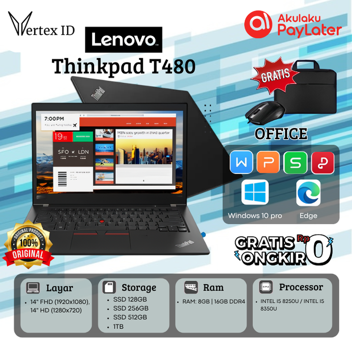 LAPTOP LENOVO THINKPAD T480 LAPTOP THINKPAD X1 CARBON THINKPAD X280 CORE I5/I7 GEN8 TS, RAM 8/128GB SSD FREE TAS