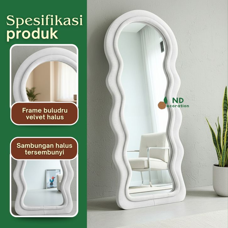 Cermin Full Body Irreguler Wavy Aesthetic Standing Mirror Korean Mirror