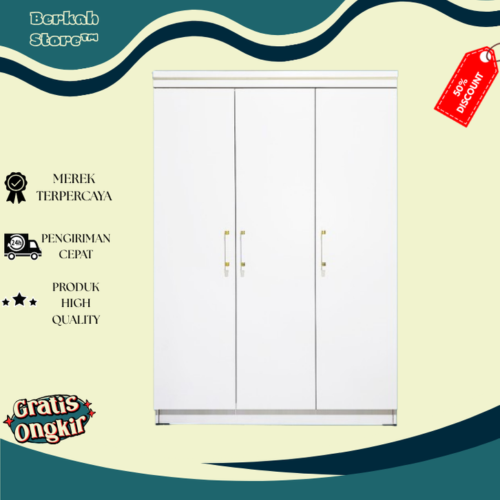 Lemari Baju Pakaian 3 Pintu GAMIS Kaca Didalam Aesthetic Estetik termurah