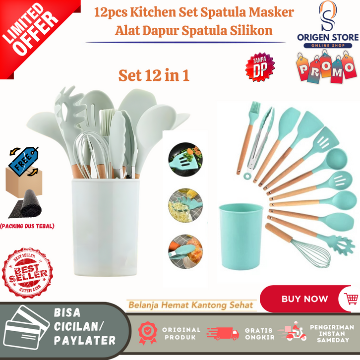 Silicone Utensil Set 12pcs Peralatan spatula silikon sutil Kitchen Set Free Wadah VS-1809