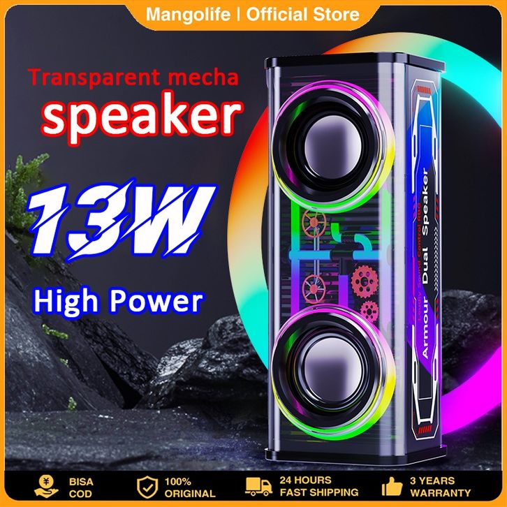 Cyberpunk Bluetooth Speaker 13W Double Subwoofer Music Speaker RGB LED Light Transparent Mecha Speaker V8 Speaker Blueto