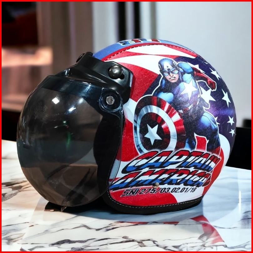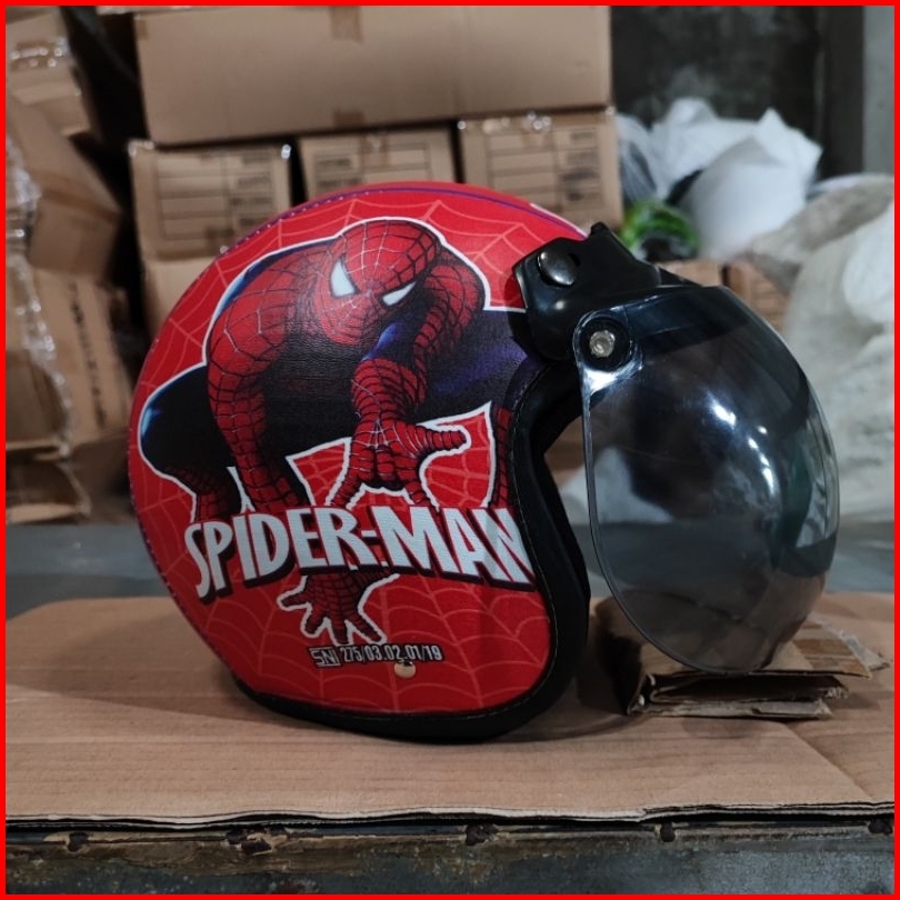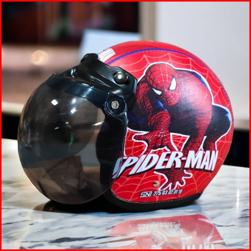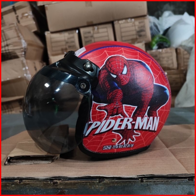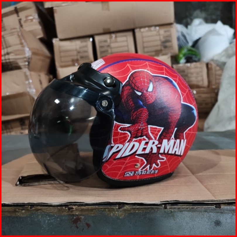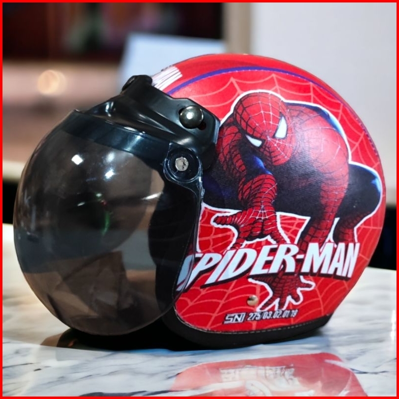 Helm Bogo Anak Retro Karakter Spiderman Sni Laki-laki Perempuan Usia 2-6 Tahun Kaca Cembung