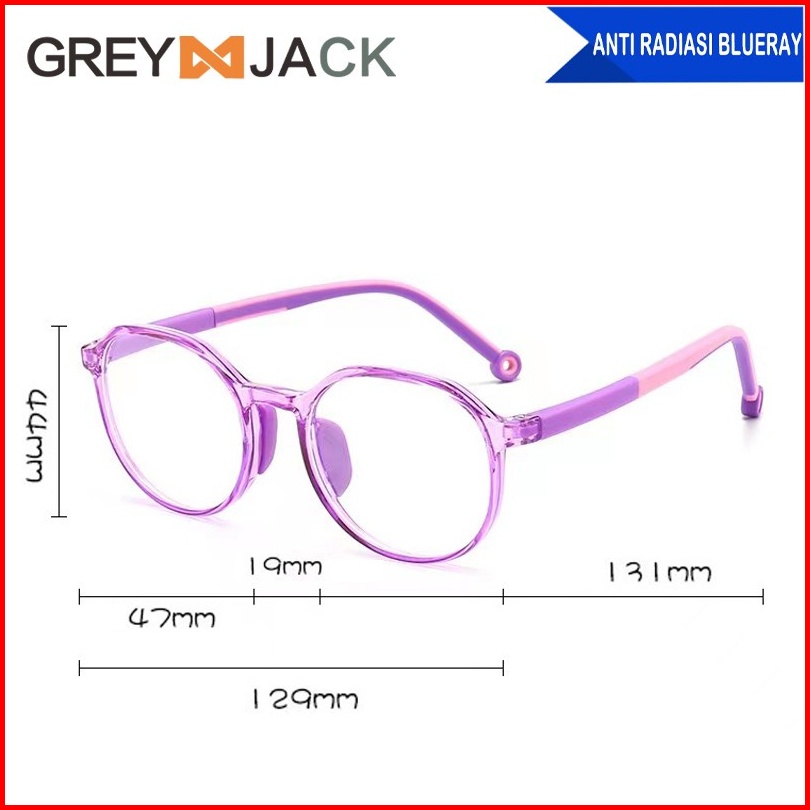Grey Jack Kacamata Anak Anti Radiasi Blueray Komputer Hp Tv Tr90 Ringan Lentur Fa 2231