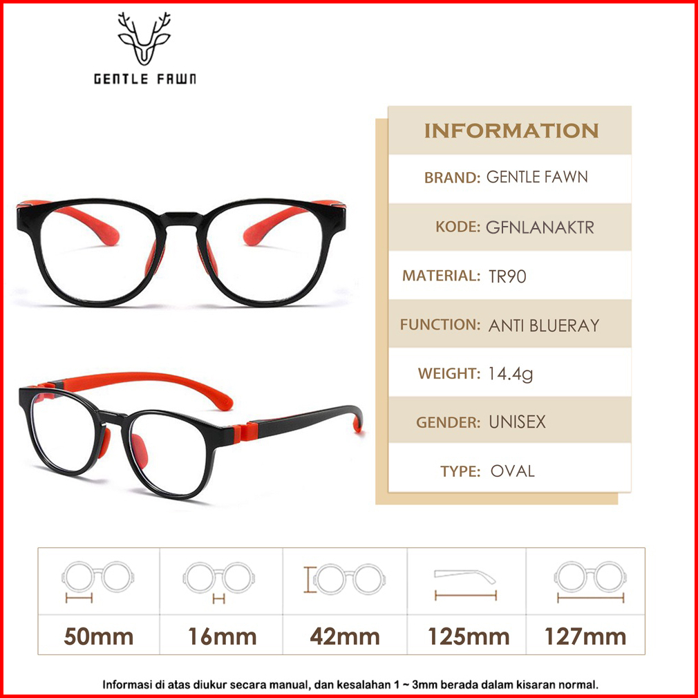 Gentle Fawn Kacamata Anak Antiradiasi Blueray Sinar Biru Hp Laptop Tv Style Oval Tr90 Biru Anak Perempuan Dan Laki-laki