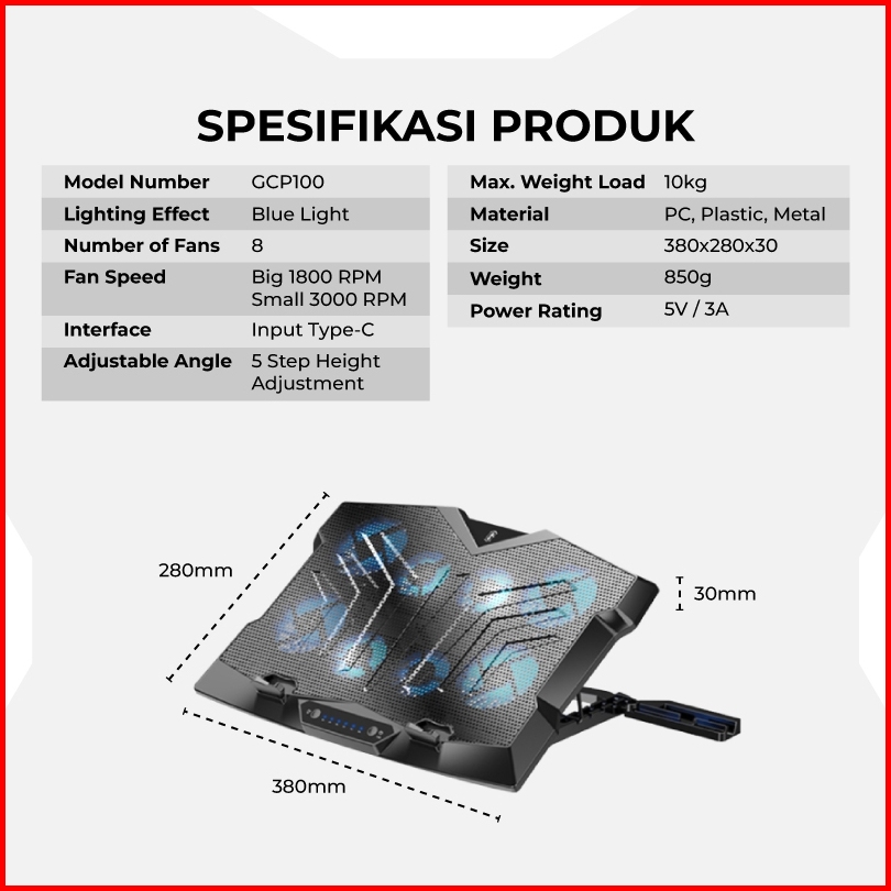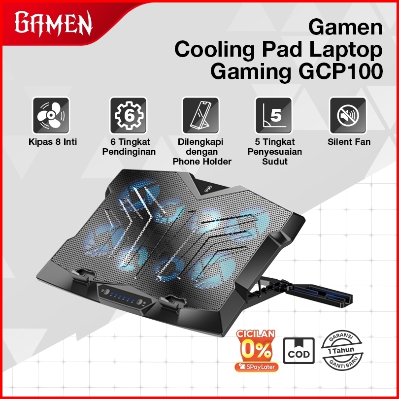 Gamen Laptop Gaming Cooling Stand Kipas 8 Inti Core Silent Mode Gcp100 Original - Garansi 1 Tahun