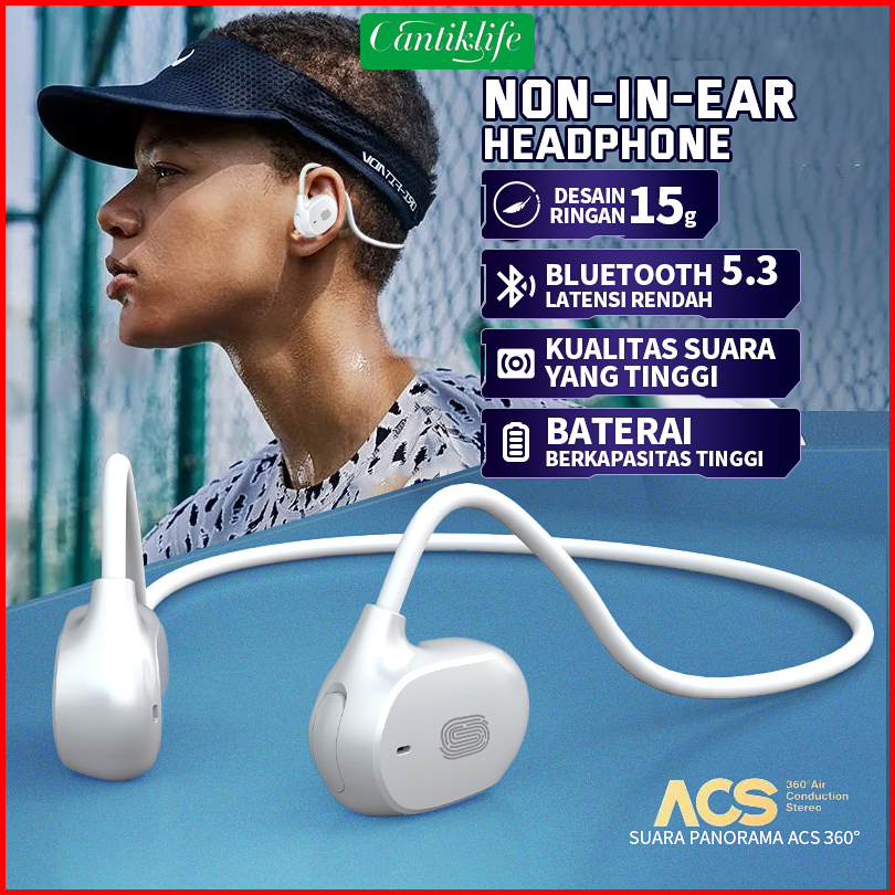 2024 New Hot 12bulan Garansi Cantiklife Ows Tws Headset Bluetooth Open Ear Sport Headset Bluetooth 5.3 Air Bone Conducti
