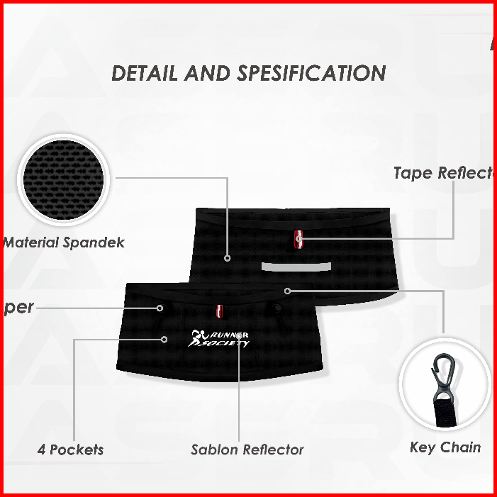 Running Belt Run Mount Runstreet Sabuk Lari Tas Pinggang Tas Lari Belt Hitam Reflektif Polos Simpel