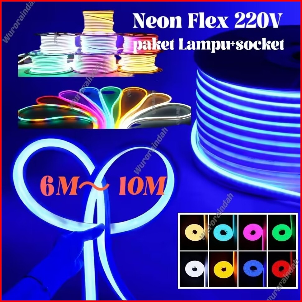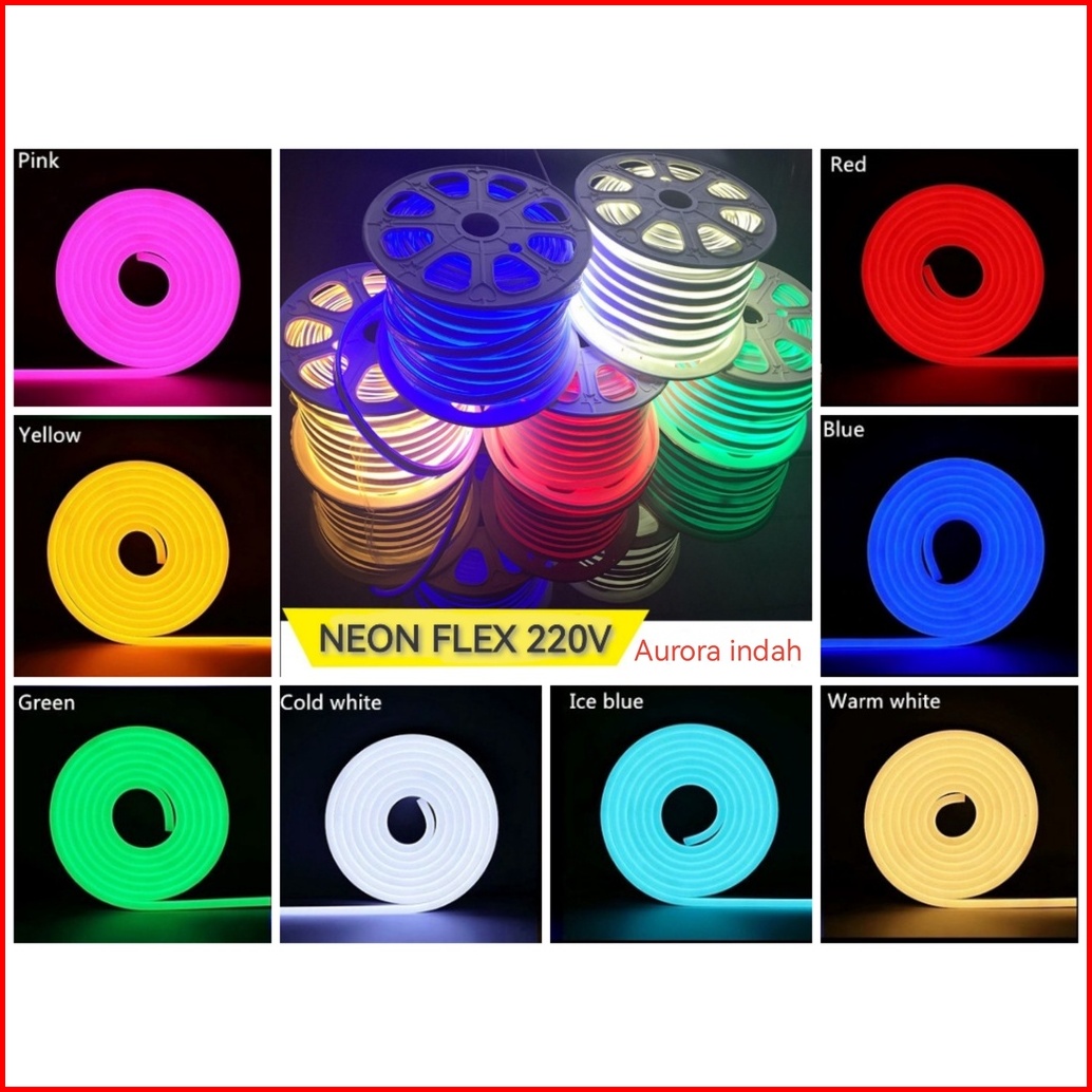 Paket Lampu Neon Flex 220v 6m 7m 8m 9m 10m 10 Meter Led Selang Fleksibel 220v Warna Neon Box Outdoor Ip65 Huruf Diy 220v