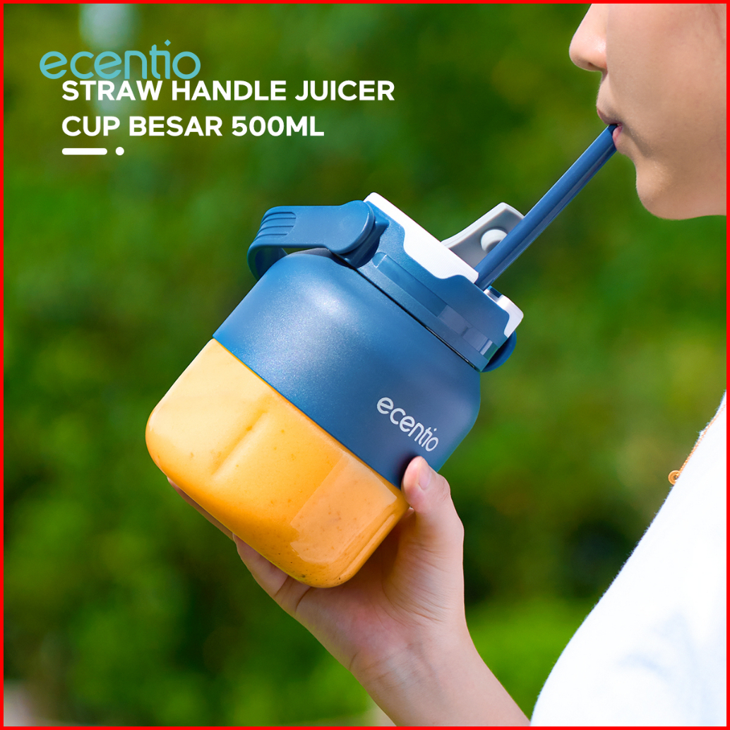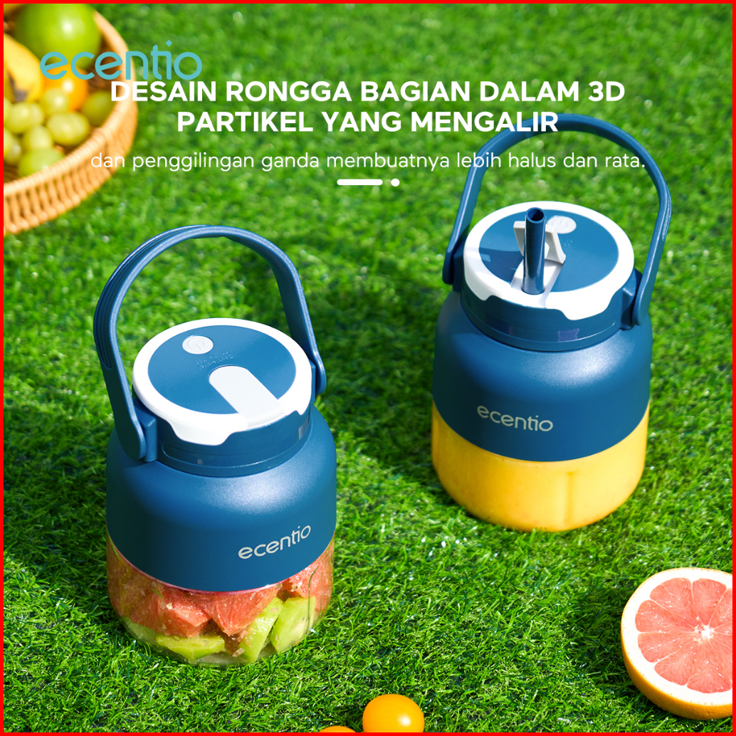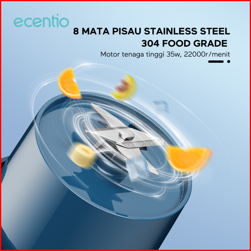 Ecentio Blender 8 Mata Pisau 500ml Juicer Dengan Silikon Sedotan Rechargeable Kapasitas Besar Belender Portable