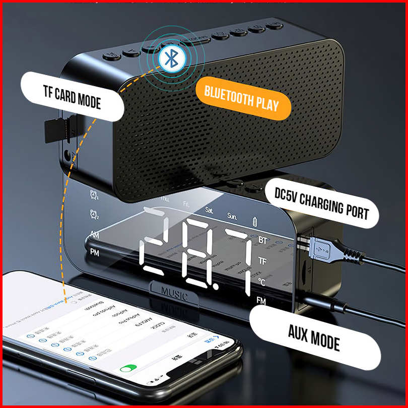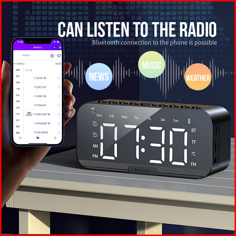 Speaker Bluetooth 5.3 Fm Am Radio Led Clock S16 P6 Wireless Bass Mini Stereo Original Speaker