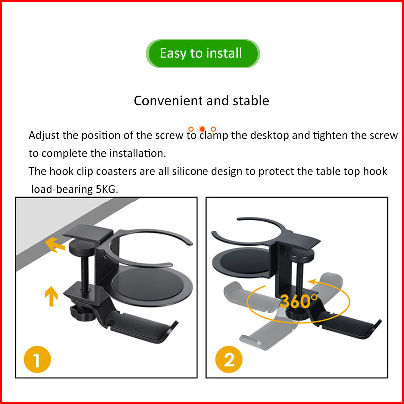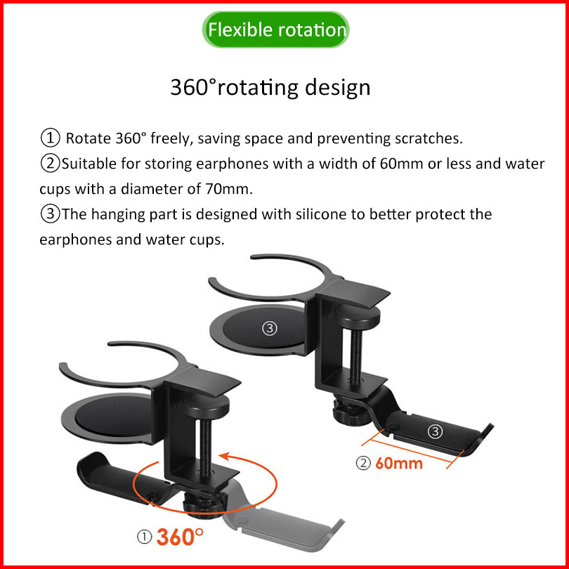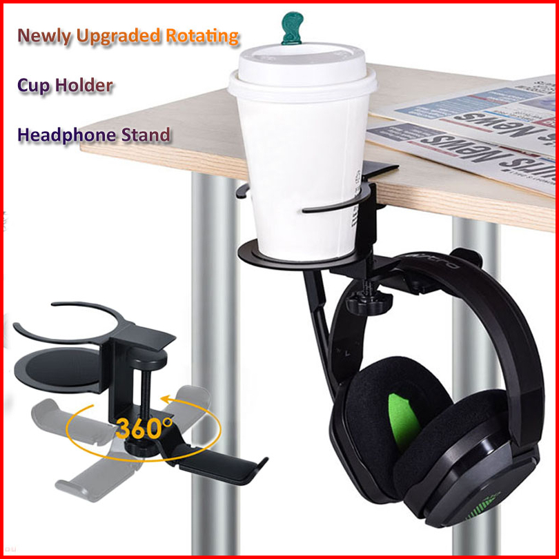 Under Desk Headphone Hanger Glass Cup Gantungan Headset Holder Premium Triple W