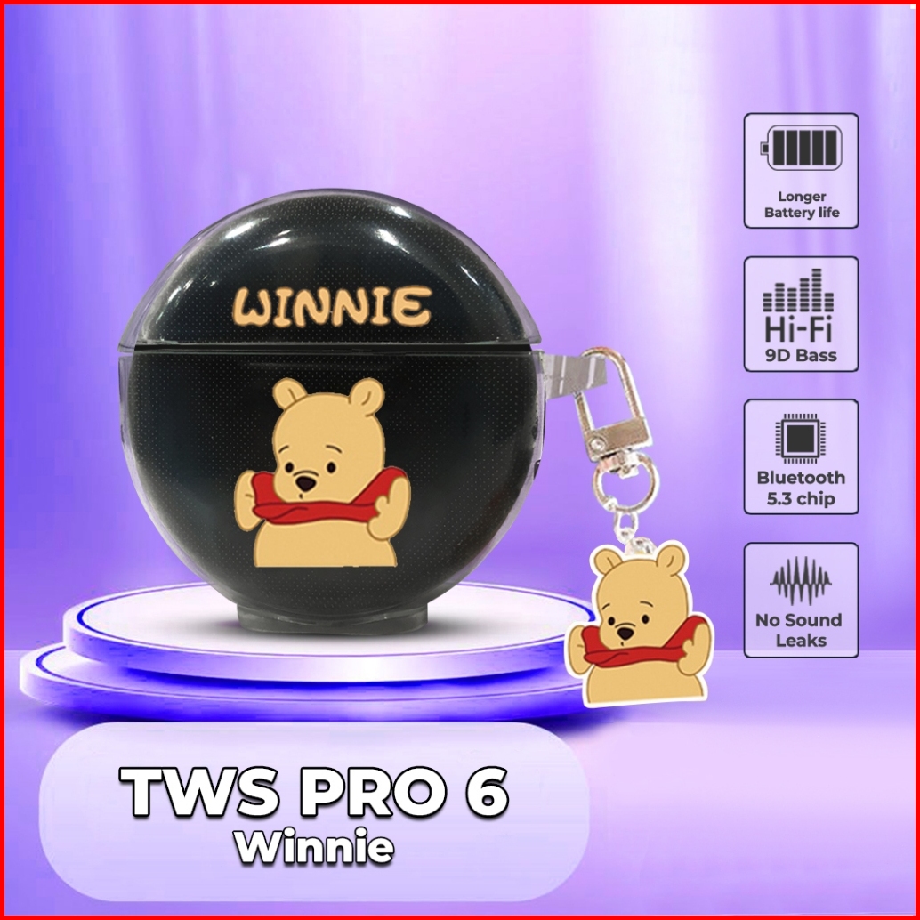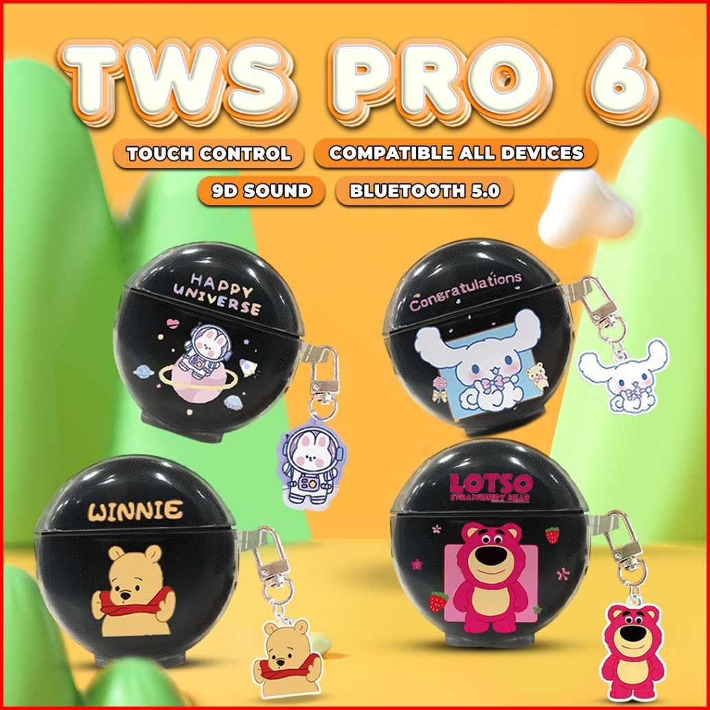 Viclook Airpods Inpods Pro 6 Tws Kontrol Sentuh Headset Bass Stereo 9d Dengan Casing Kartun Lucu