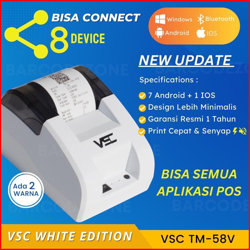 Printer Thermal 58mm Bluetooth Vsc Tm-58v Rpp02n Moka Android Ios -putih White