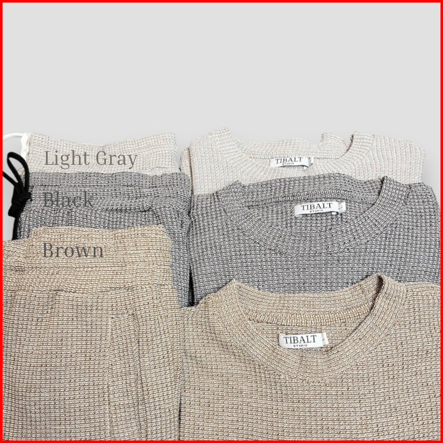 T-SHIRT BLACK, BOTTOM BLACK, T-SHIRT LIGHT GRAY, BOTTOM LIGHT GRAY, T-SHIRT BROWN, BOTTOM BROWN