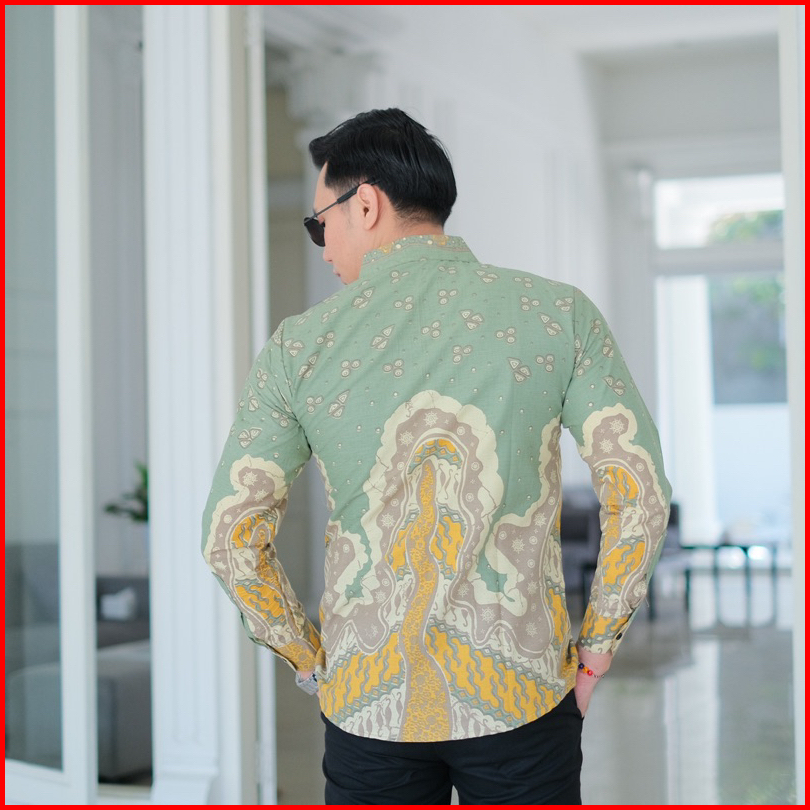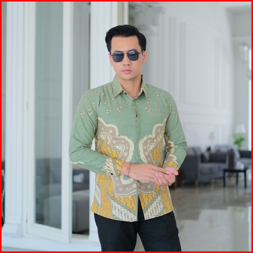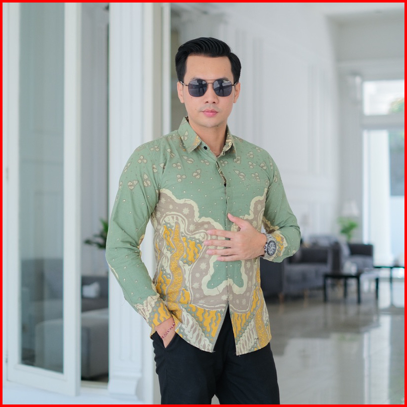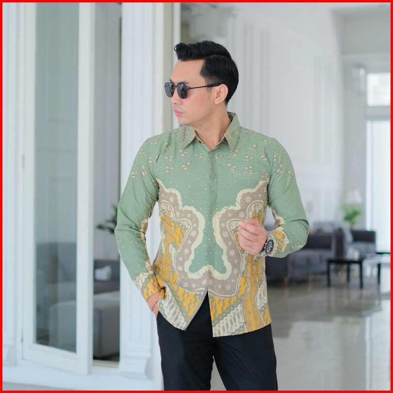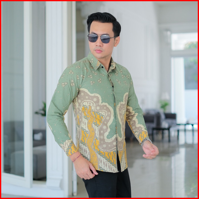Keris Sage Kemeja Batik Pria Lengan Panjang Full Furing Katun Slim Fit Warna Hijau Sage