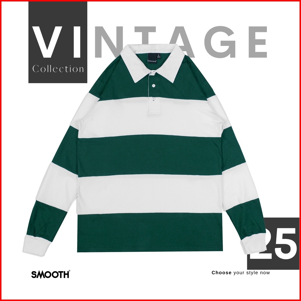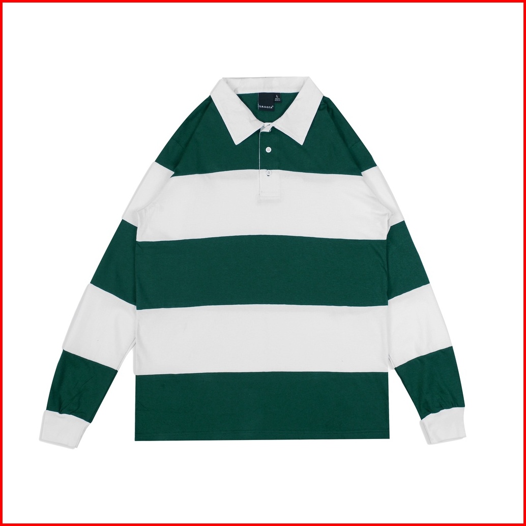 Smooth Basic Vintage Rugby Polo Shirt - Green White Green
