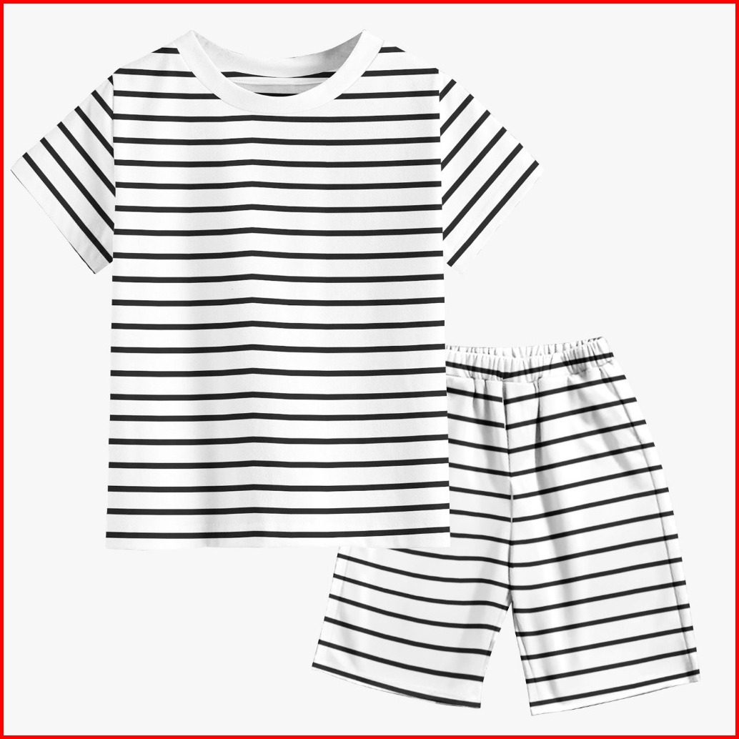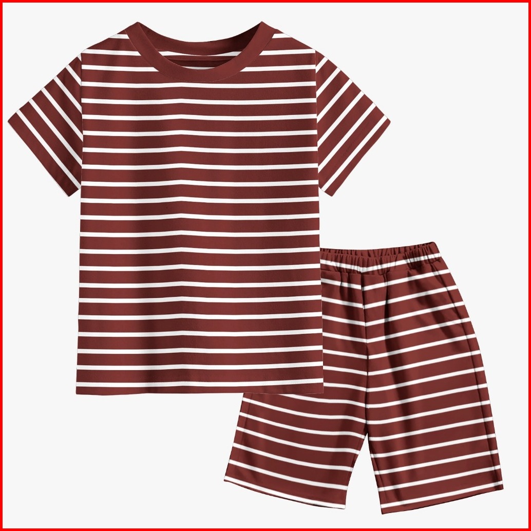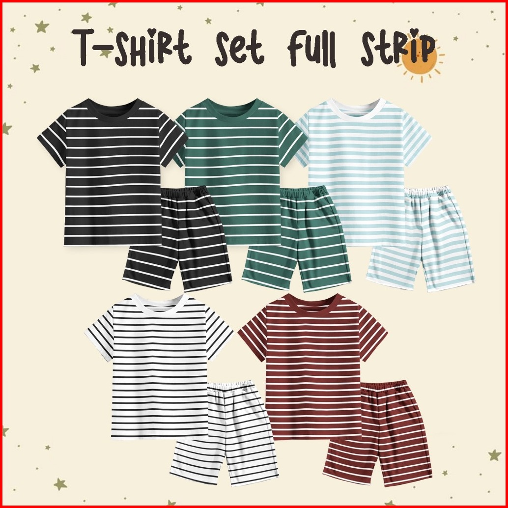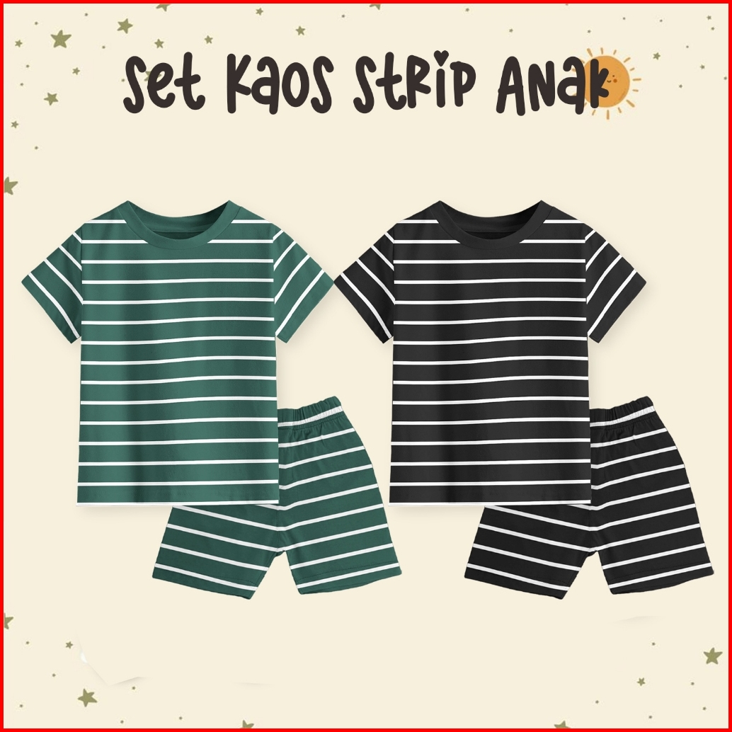 Set Kaos Salur Strip Anak Lengan Pendek Laki Laki Perempuan Unisex 1-10 Tahun