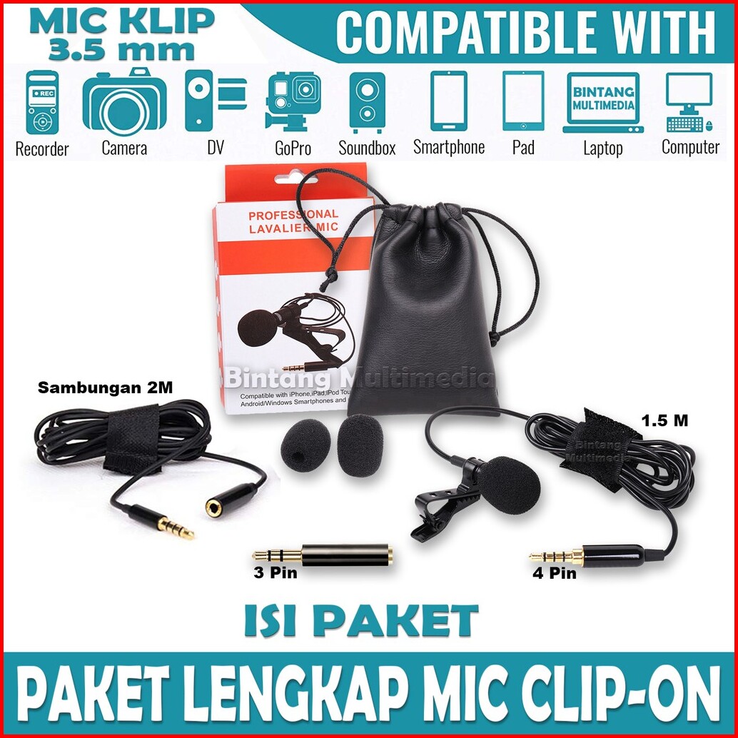 Paket Mic Clip On Professional Microphone Klip External Hp Kamera Dslr Mirrorless Komputer Laptop Pc