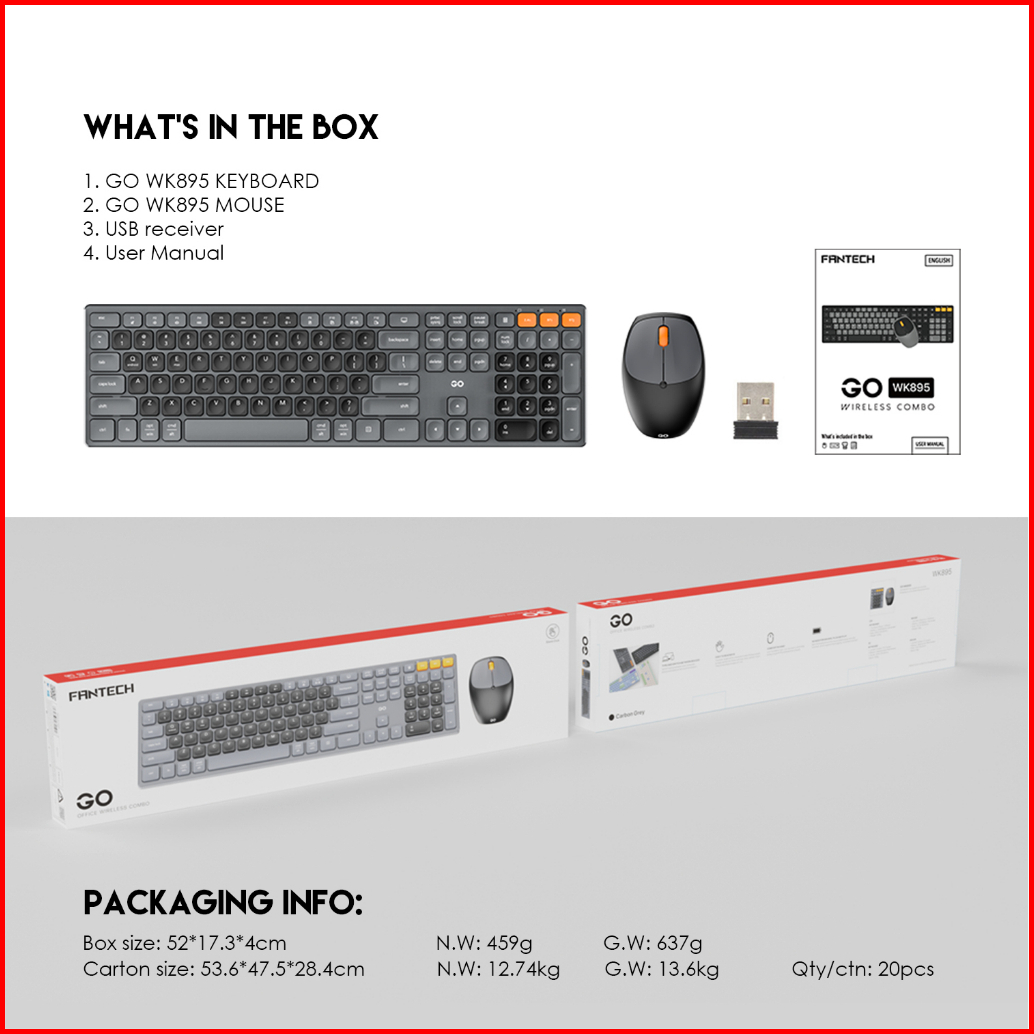 Keyboard Mouse Wireless 2 In 1 Fantech Go Pop Wk895 Portable