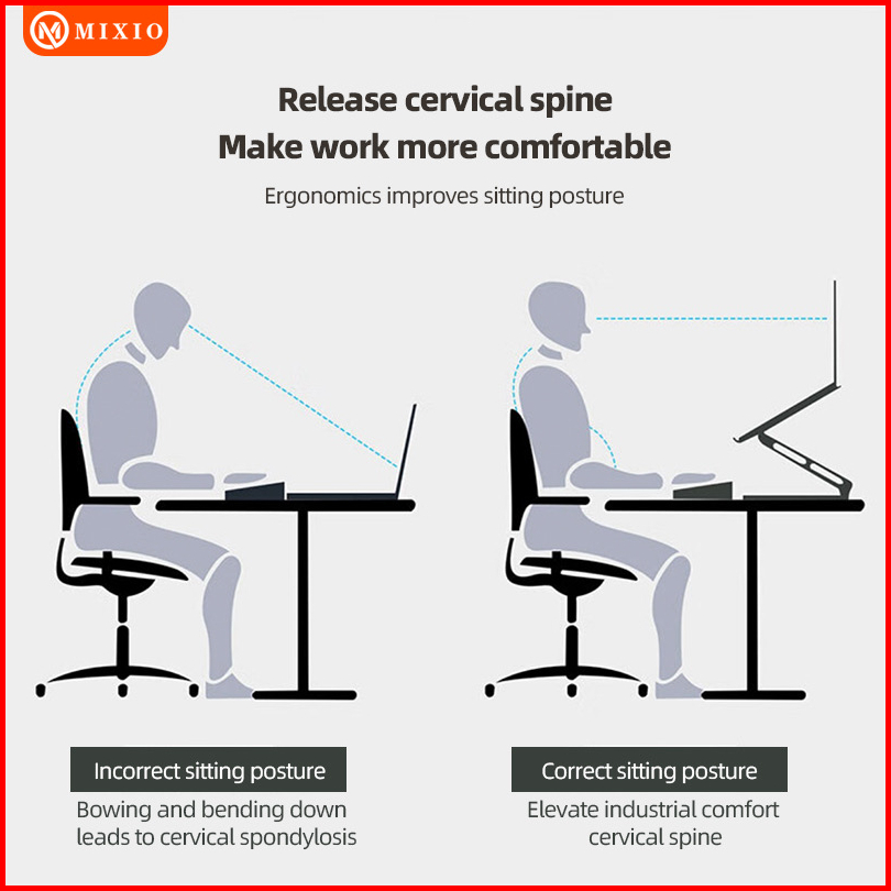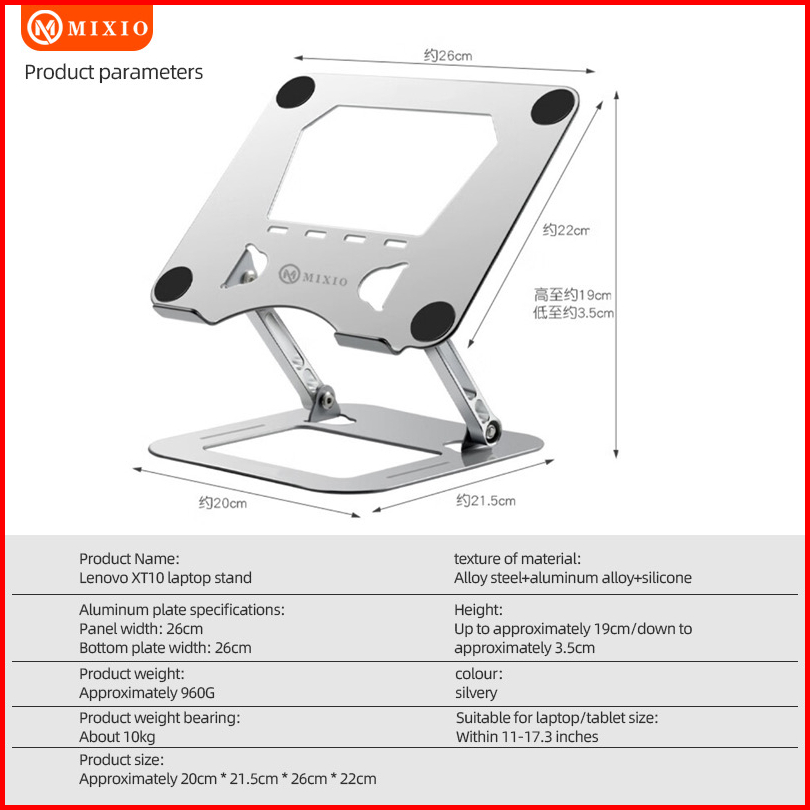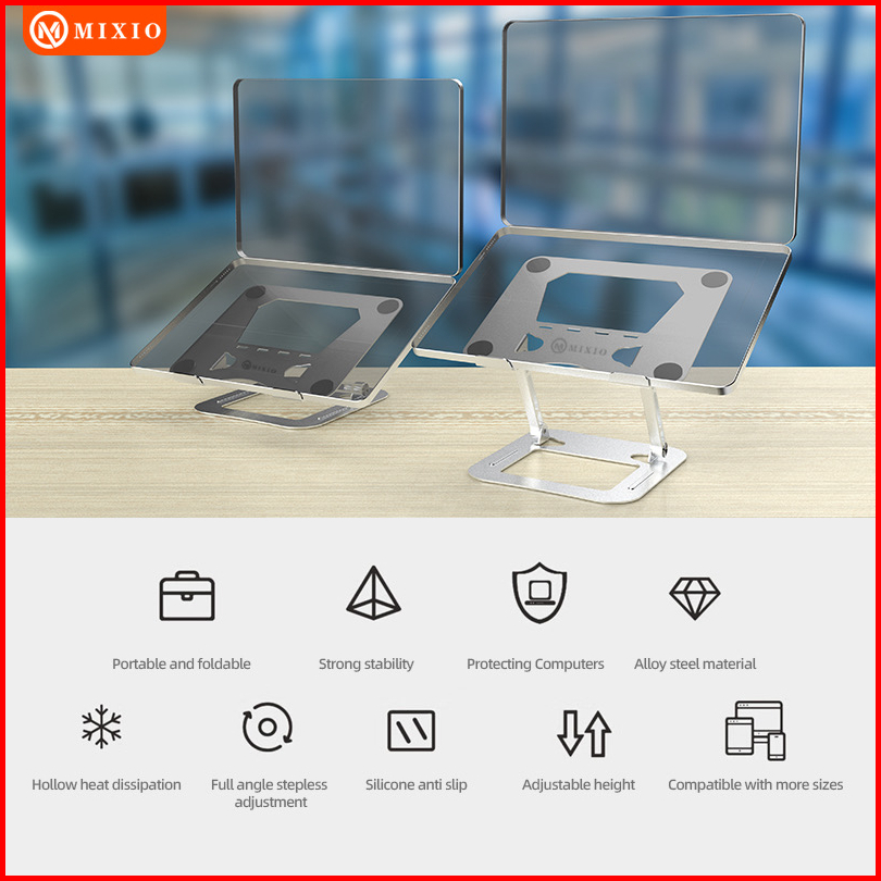 Mixio Zm-112 Metal Aluminium Dudukan Laptop Stand Holder Foldable - Silver