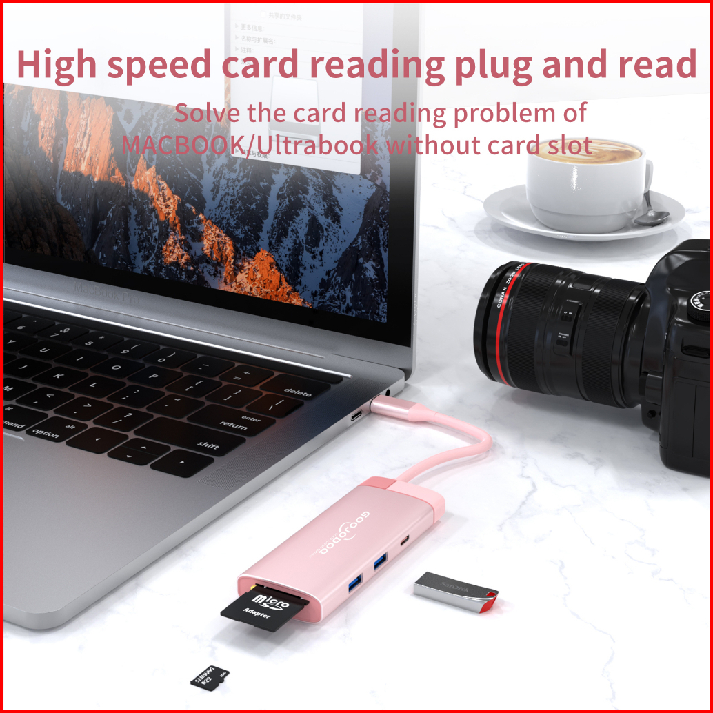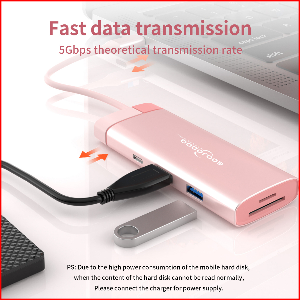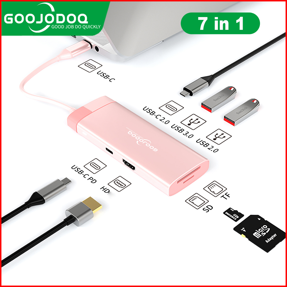Goojodoq 7 In 1 Type-c Adapte Hub Laptop Docking Station Untuk Dell Hp For Macbook Pro Type C Dock Pd Usb3.0 2.0 Hd Tf S