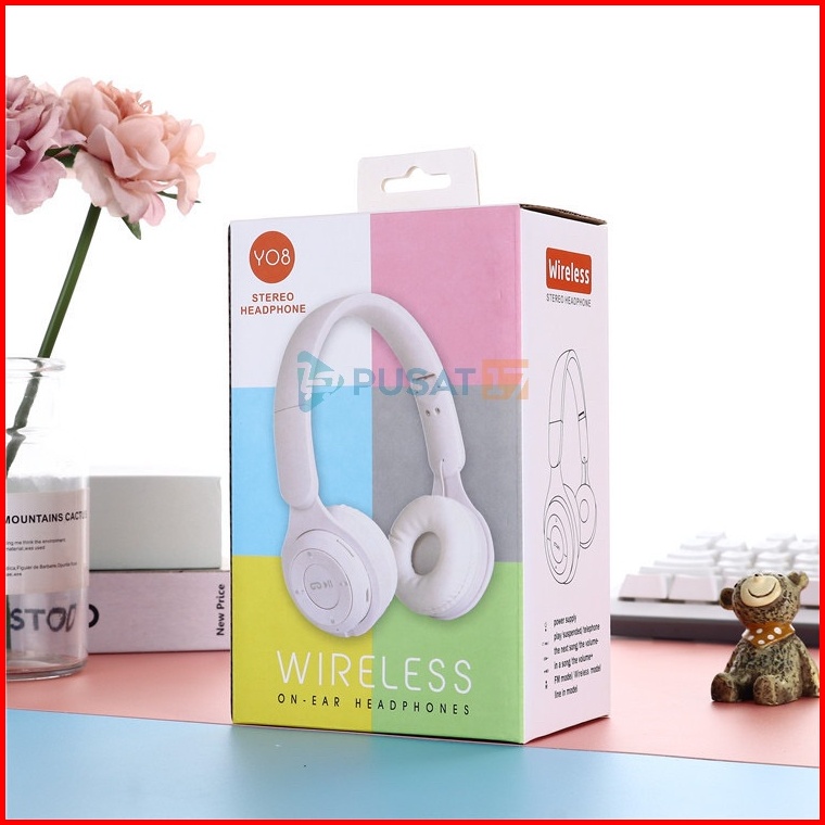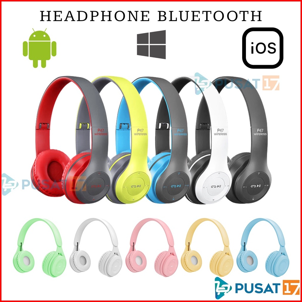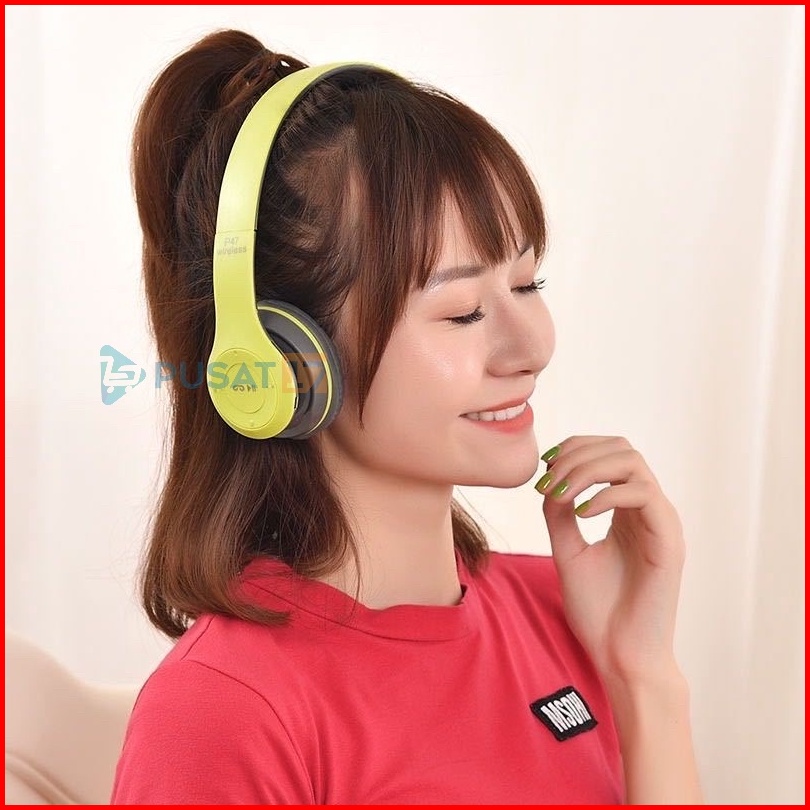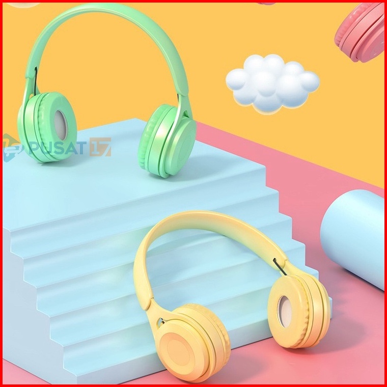Pusat17 Headphone Bluetooth P47 Y08 Macaron Pure Bass Headset Bluetooth P47 Y08 Makaron Headset Bando Gaming Lipat Wirel