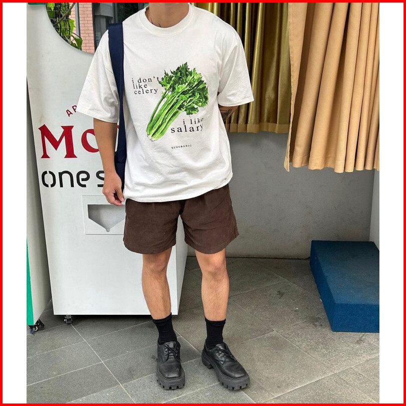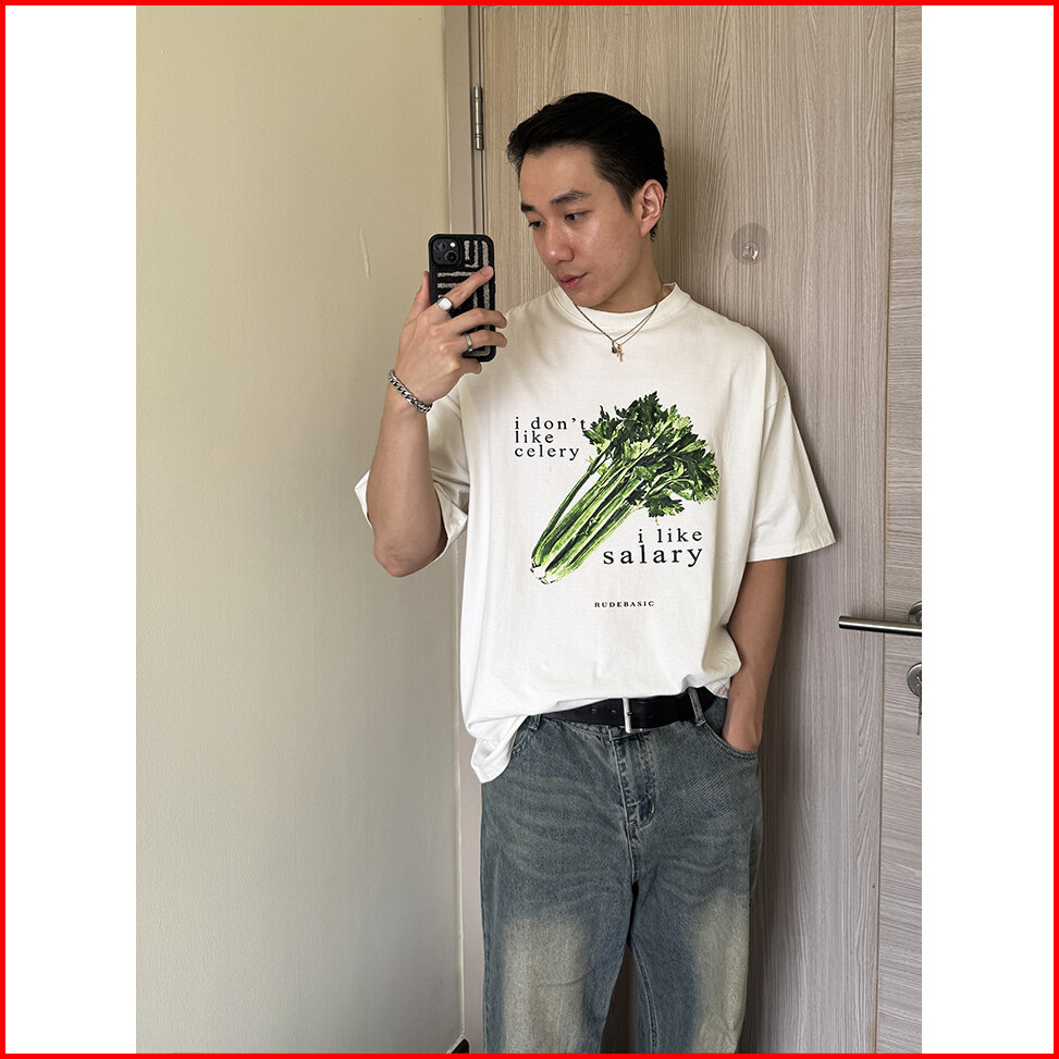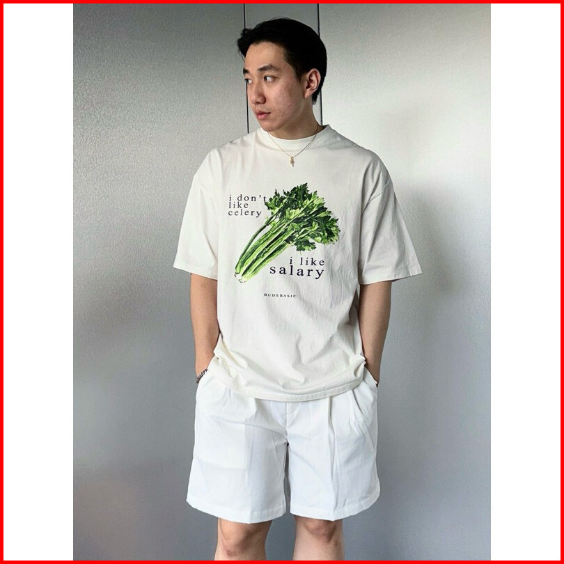Rudebasic - Celery Oversized Tee Heavy Weight Kaos Oversize Kaos Putih Pria Kaos Graphic