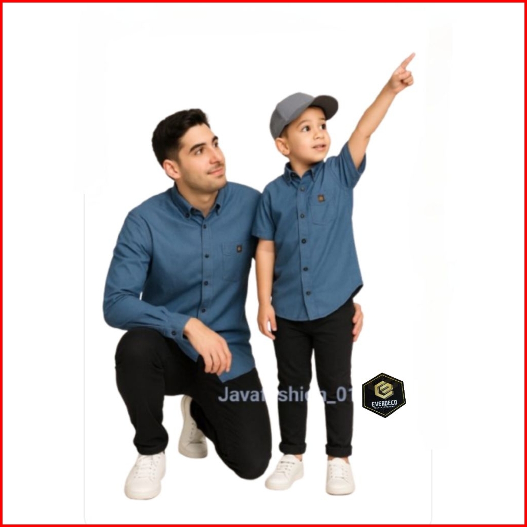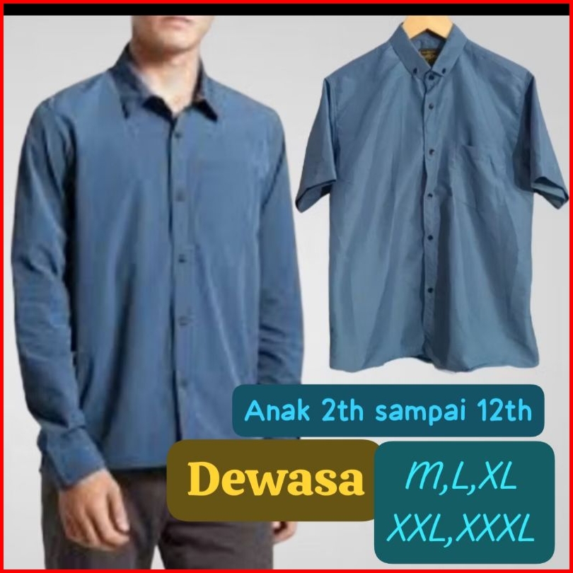 Kemeja Biru Denim Kemeja Steel Blue Pria Lengan Panjang Dan Pendek Kemeja Couple Ayah Anak Lengan Panjang Dan Pendek