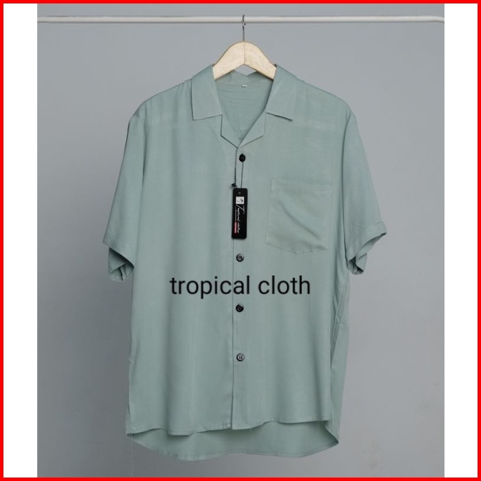 Kemeja Pendek Vintage T-shirt Hijau Sage Rayon Twill