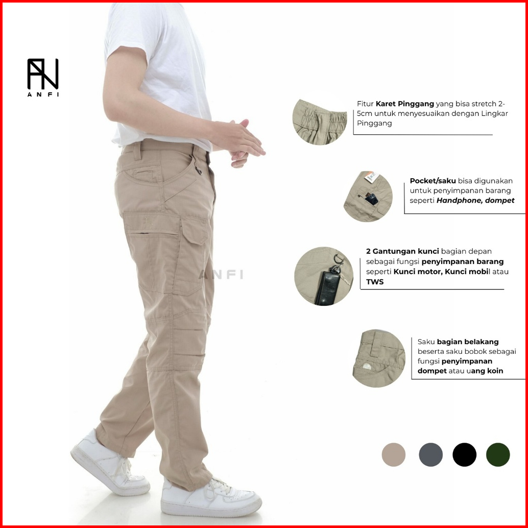 Anfi Cargo Long Pants Pria Bahan Risptok Tebal Nyaman Tangguh