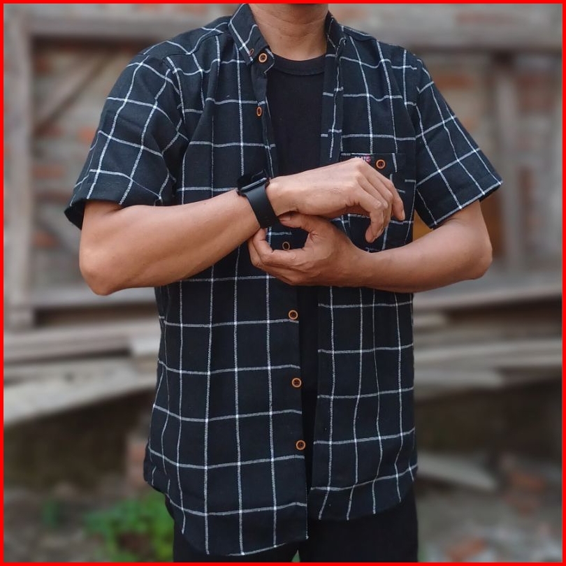 Kemeja Flanel Pria Wanita Lengan Pendek Kotak Kotak Premium High Quality Unisex Terlaris Motif Baru