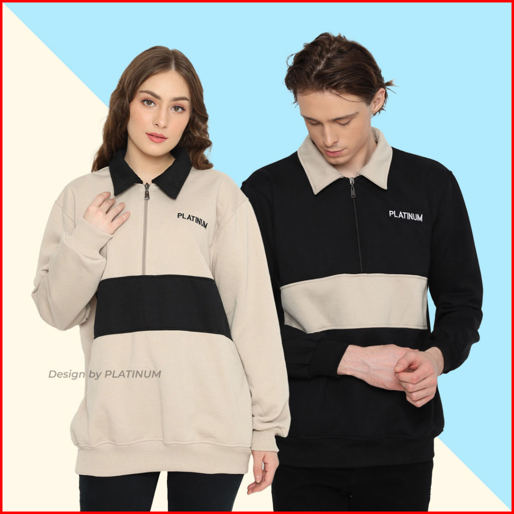 Platinum World Sweatshirt Crewneck Half Zipp Rugby Pria - Wanita
