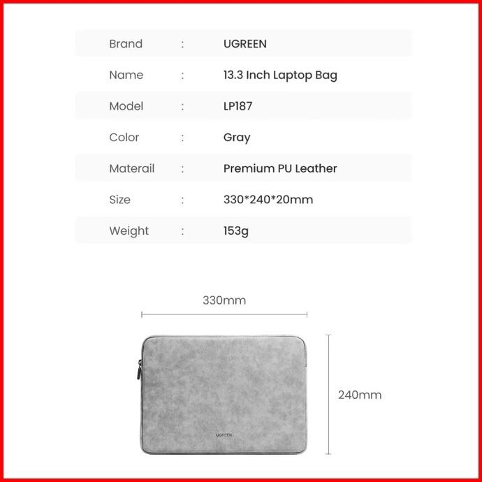 Ugreen Tas Sarung Laptop Bag Sleeve Case Thinkpad Macbook Ipad Air Pro 12.9 13inch 16inch Lp187