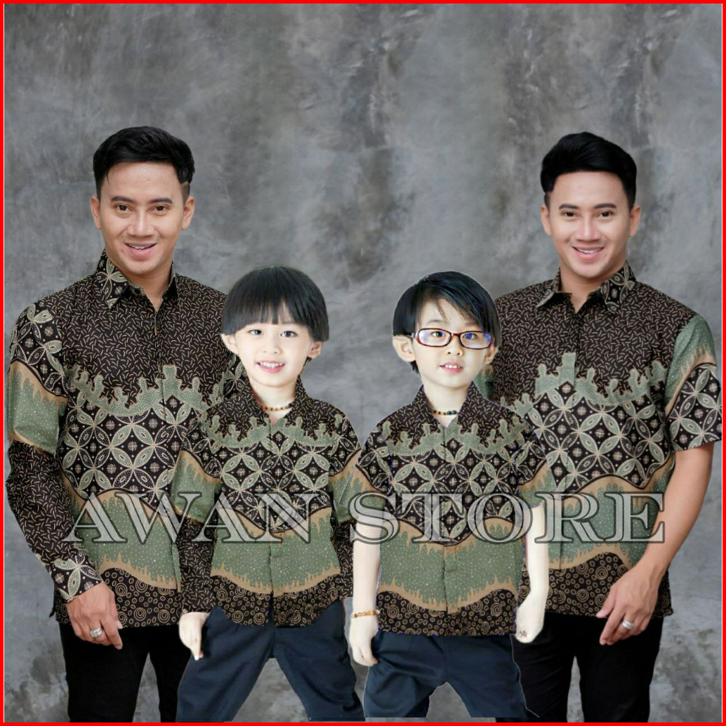 Terbaru Kemeja Batik Ayah Dan Kemeja Batik Anak Cowok Batik Hijau Sage Green