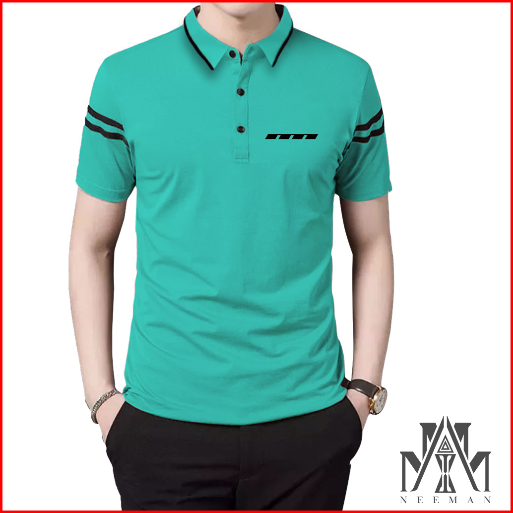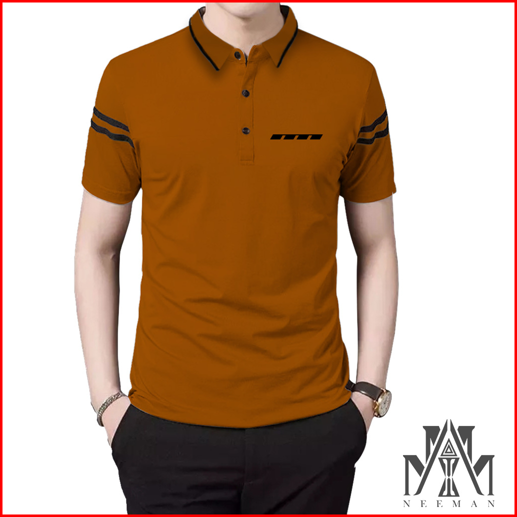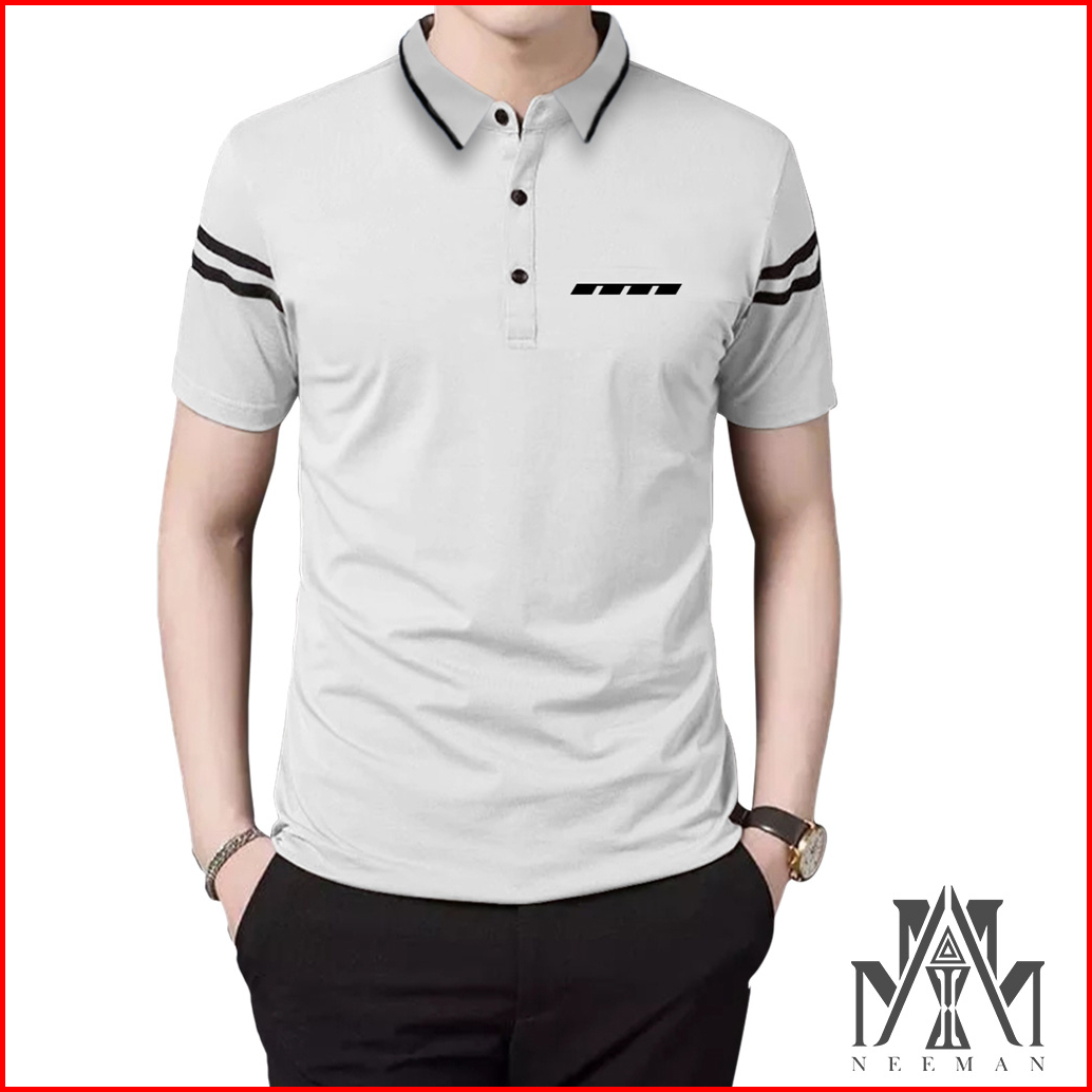 Kaos Pria Polo Saku Zebra Lengan Garis Kerah Daun Pria