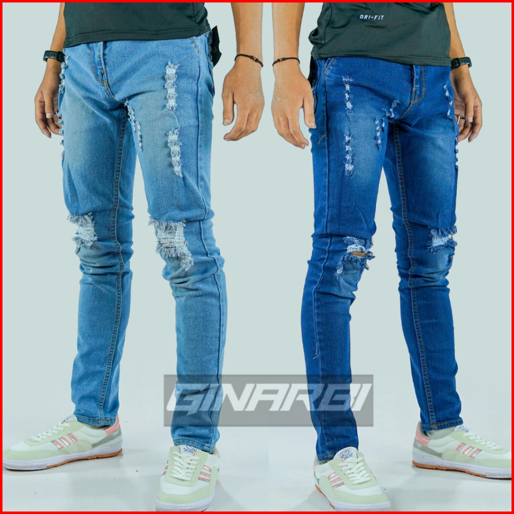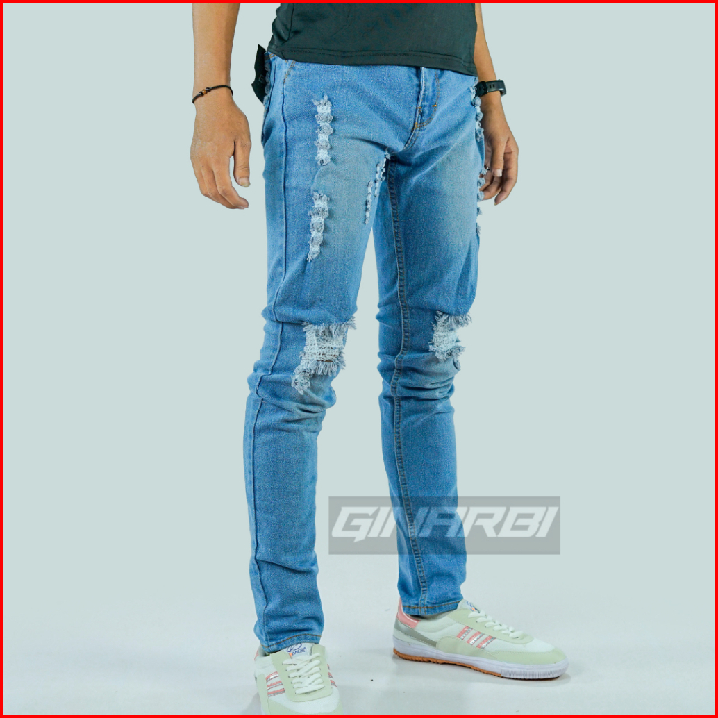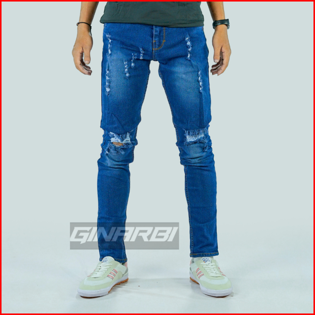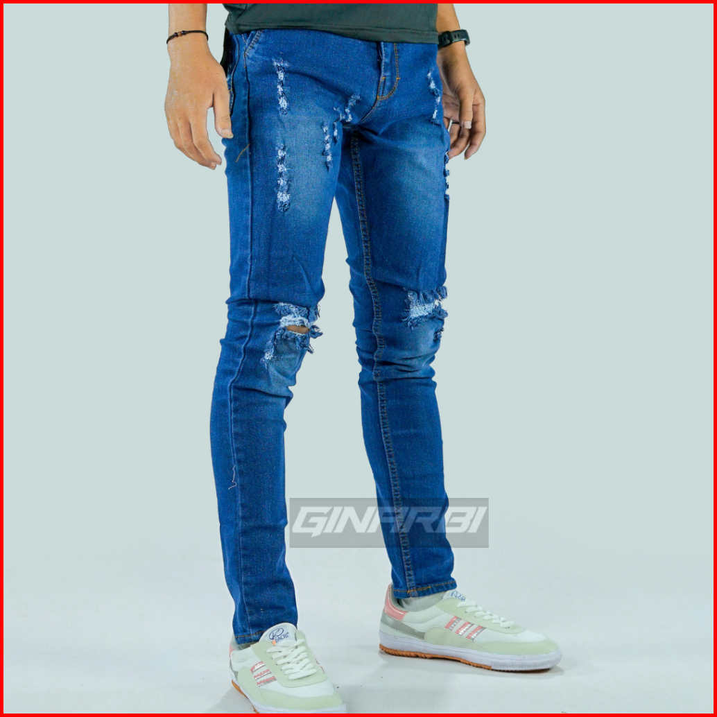 Celana Jeans Sobek Pria - Ripped Jeans - Celana Slim Fit Pria Motif Sobek