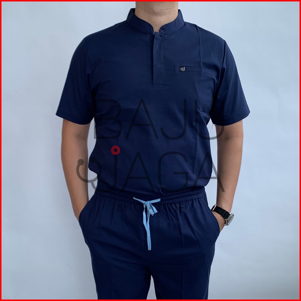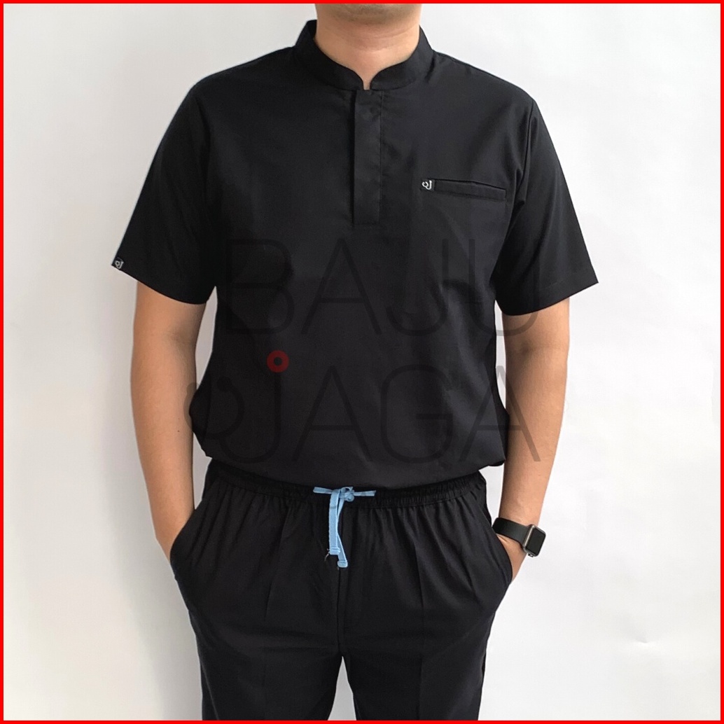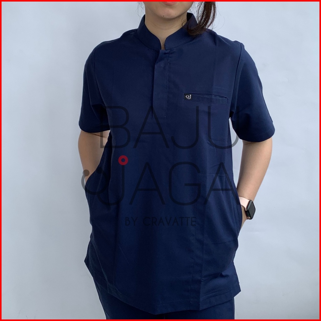 Baju Jaga Scrub Mandarin Collar Lengan Pendek